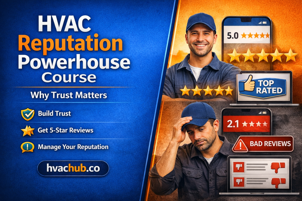 Reputation shapes decisions long before a customer ever calls. The HVAC Reputation Powerhouse Course was created because reviews, ratings, and public perception now influence trust, pricing, and buying decisions more than most owners realize.